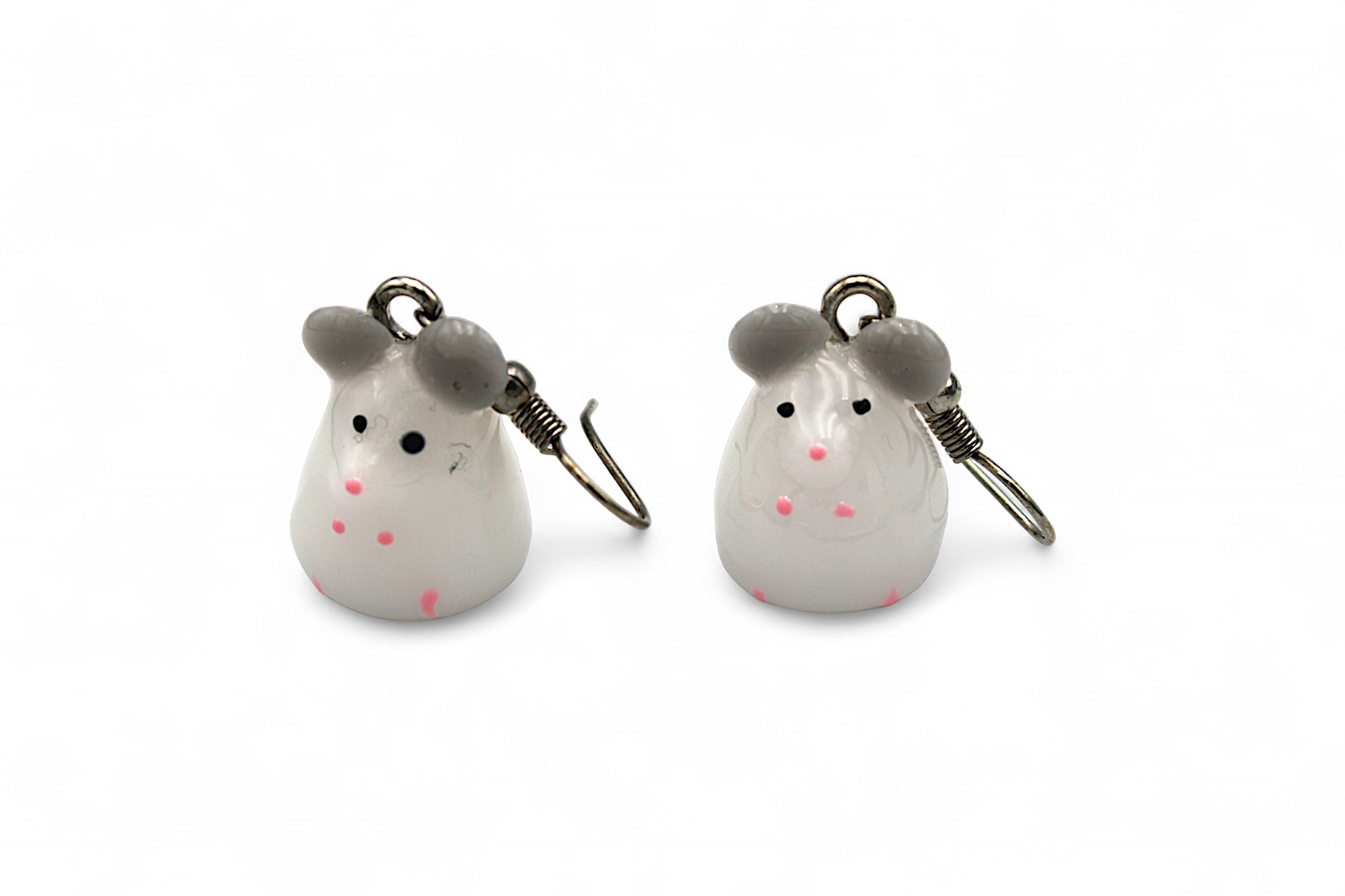 Ces boucles d'oreilles originales représentent de petites souris en résine blanche, suspendues à des pendants d'oreilles en acier inoxydable argenté. Elles apporteront une touche ludique et fantaisie à votre tenue.