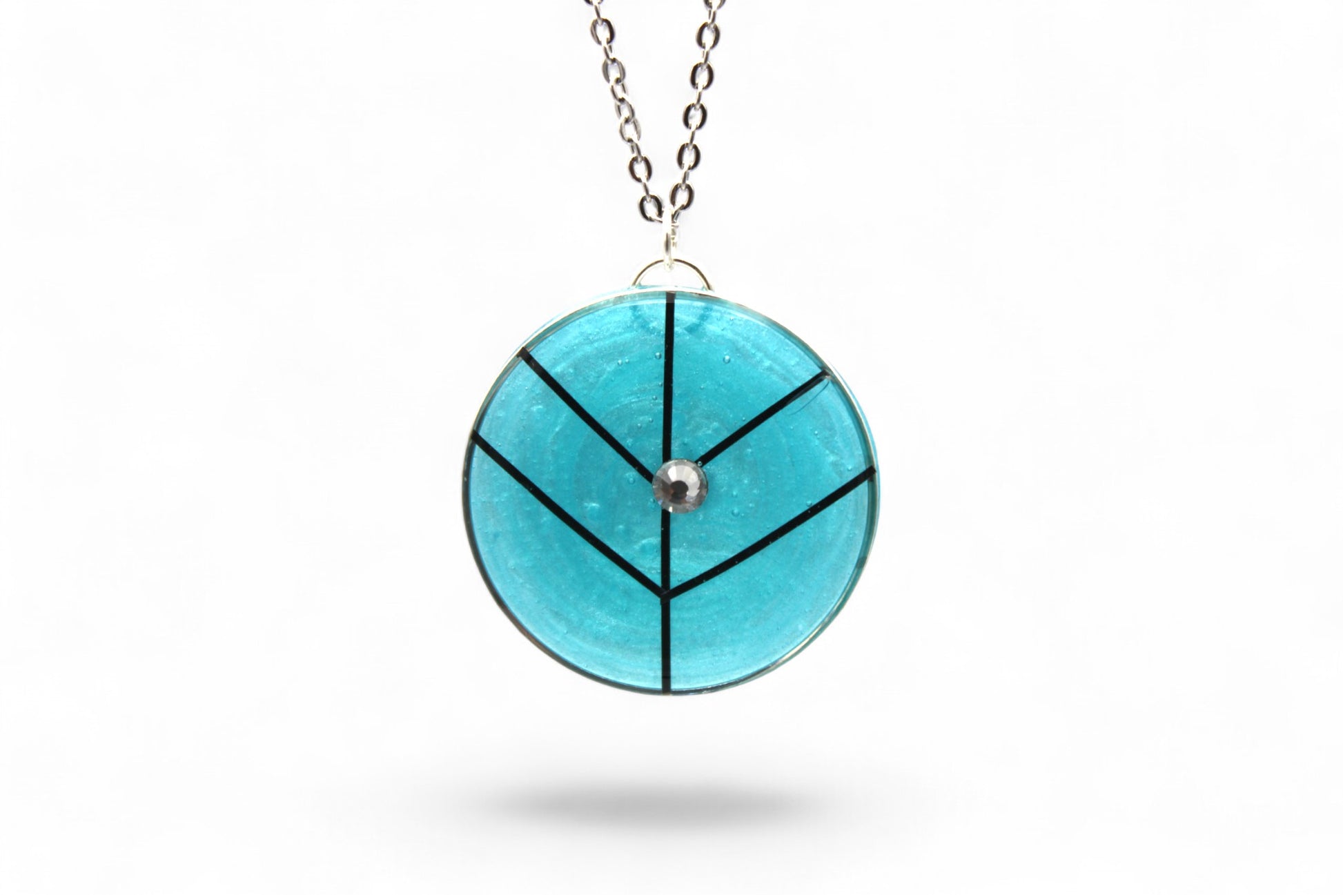Pendentif : Bouclier viking en résine bleu clair nacré