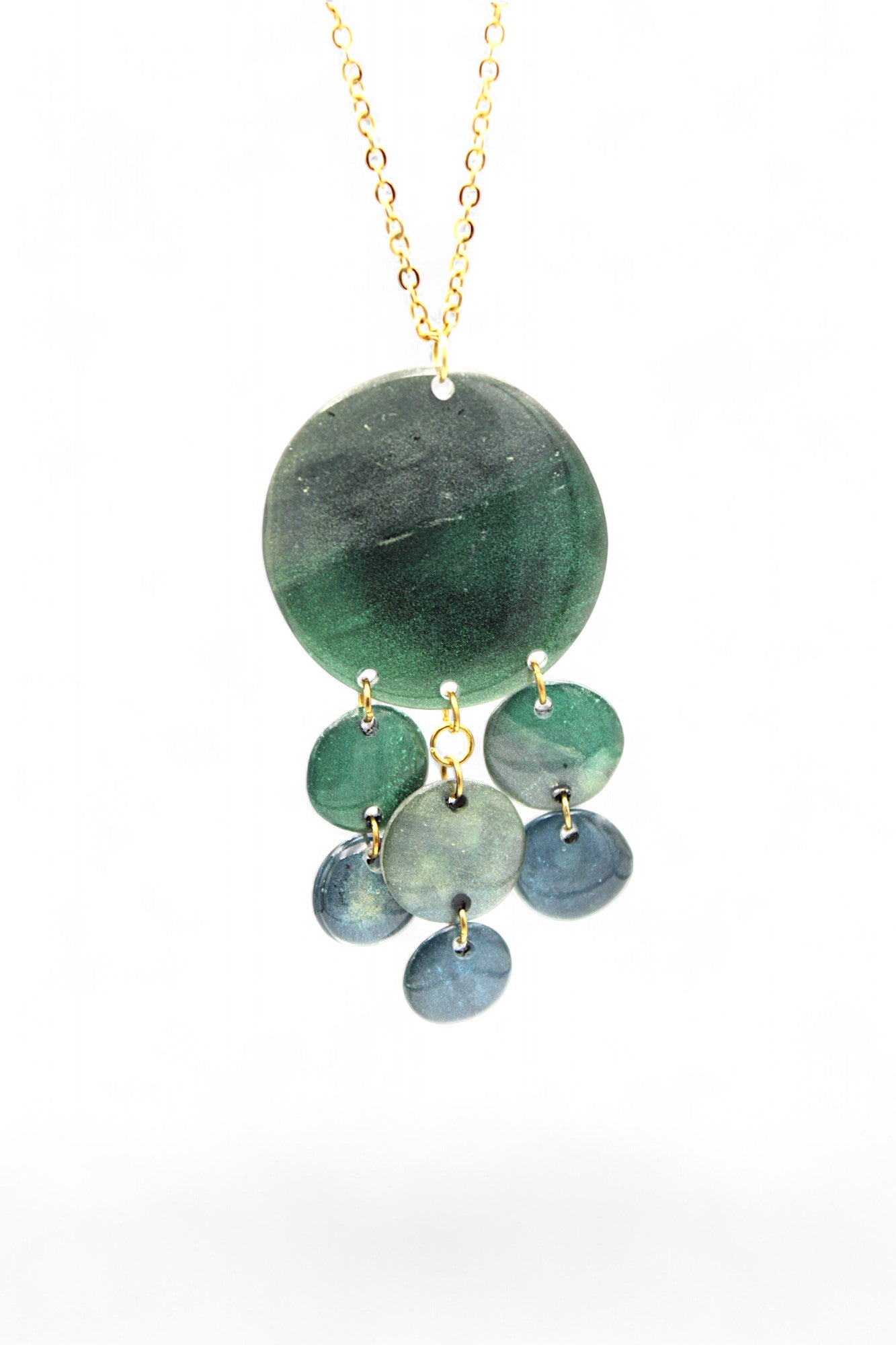 Pendentif en résine : noir, métallisé vert, jaune et bleu