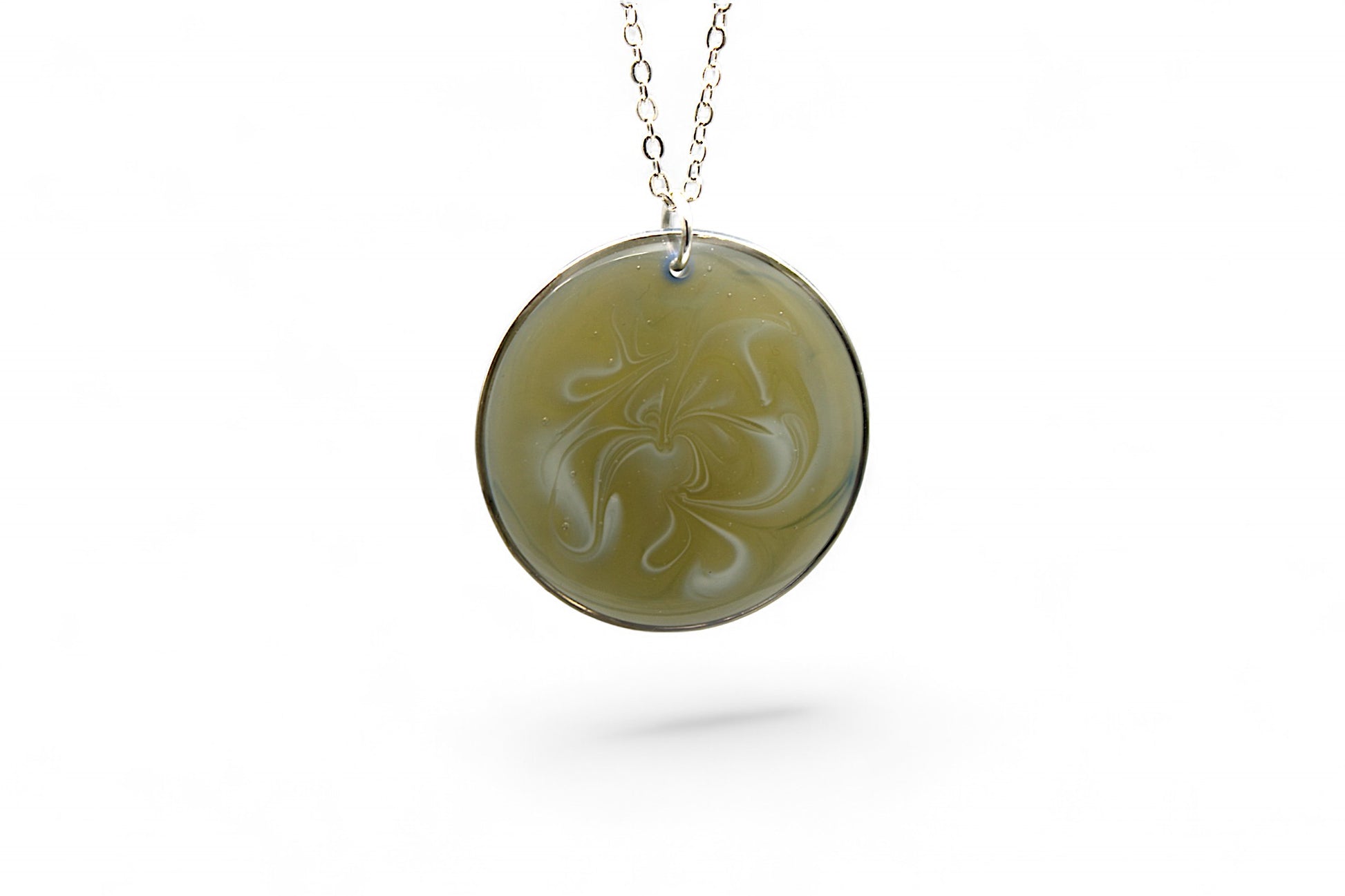 Le collier tourbillon "Naturel" est un accessoire élégant et original qui saura apporter une touche de modernité à toutes vos tenues. Le pendentif en résine kaki et tourbillon de résine blanche apporte une touche de nature à votre look.