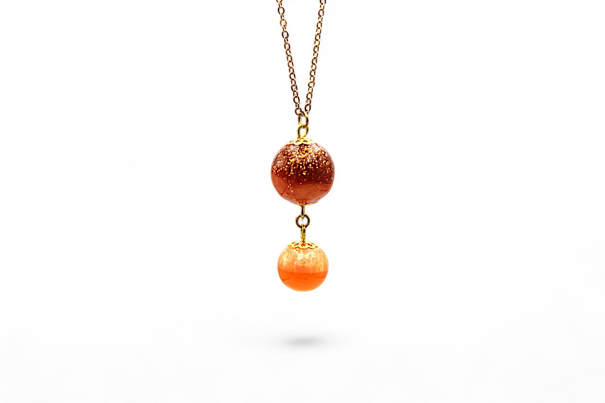 Taille du pendentif : 2,8 cm (sphère orange foncé) et 1 cm (sphère orange clair)