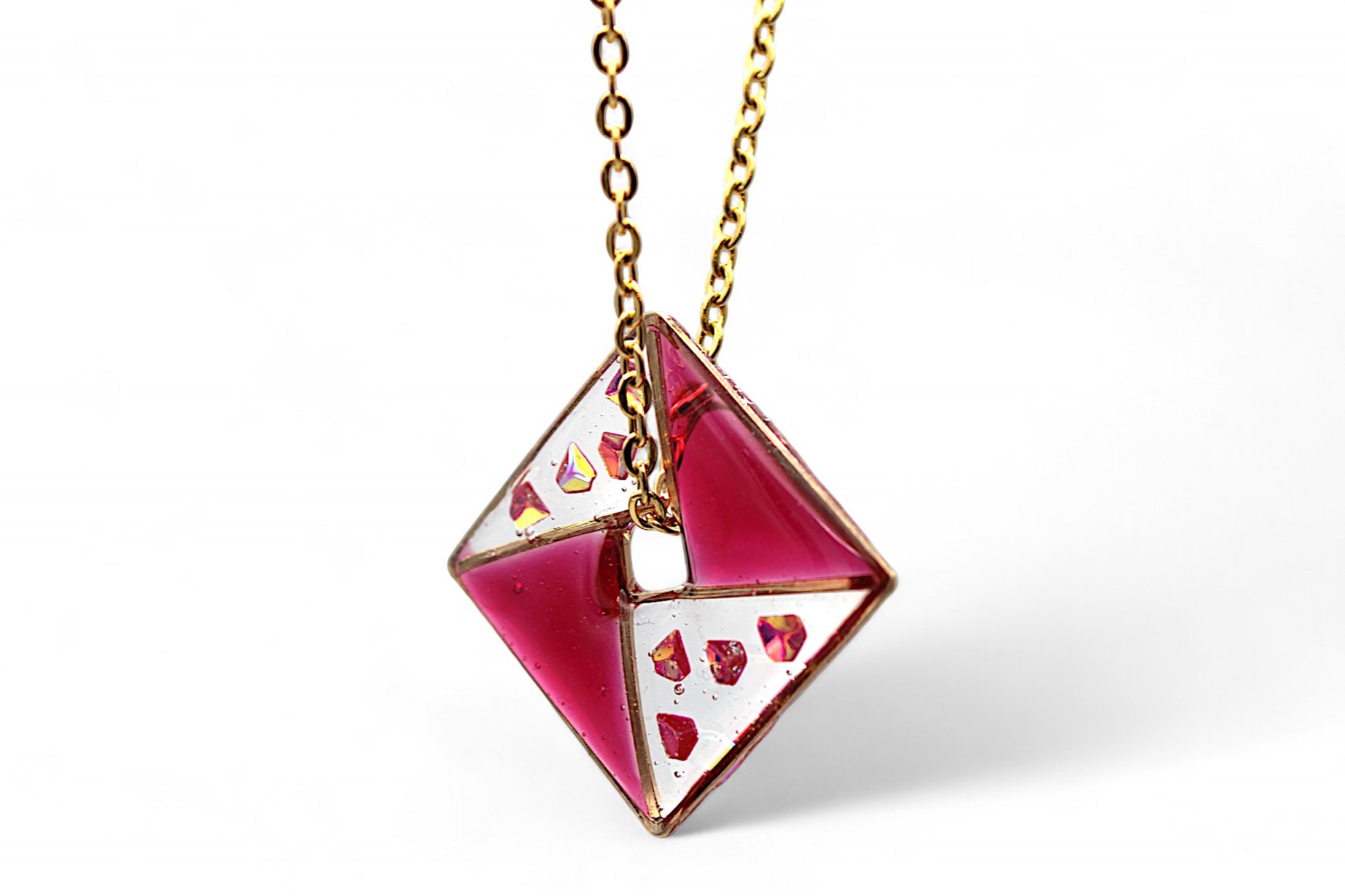 Couleur du pendentif : rouge et transparent, paillettes rouges