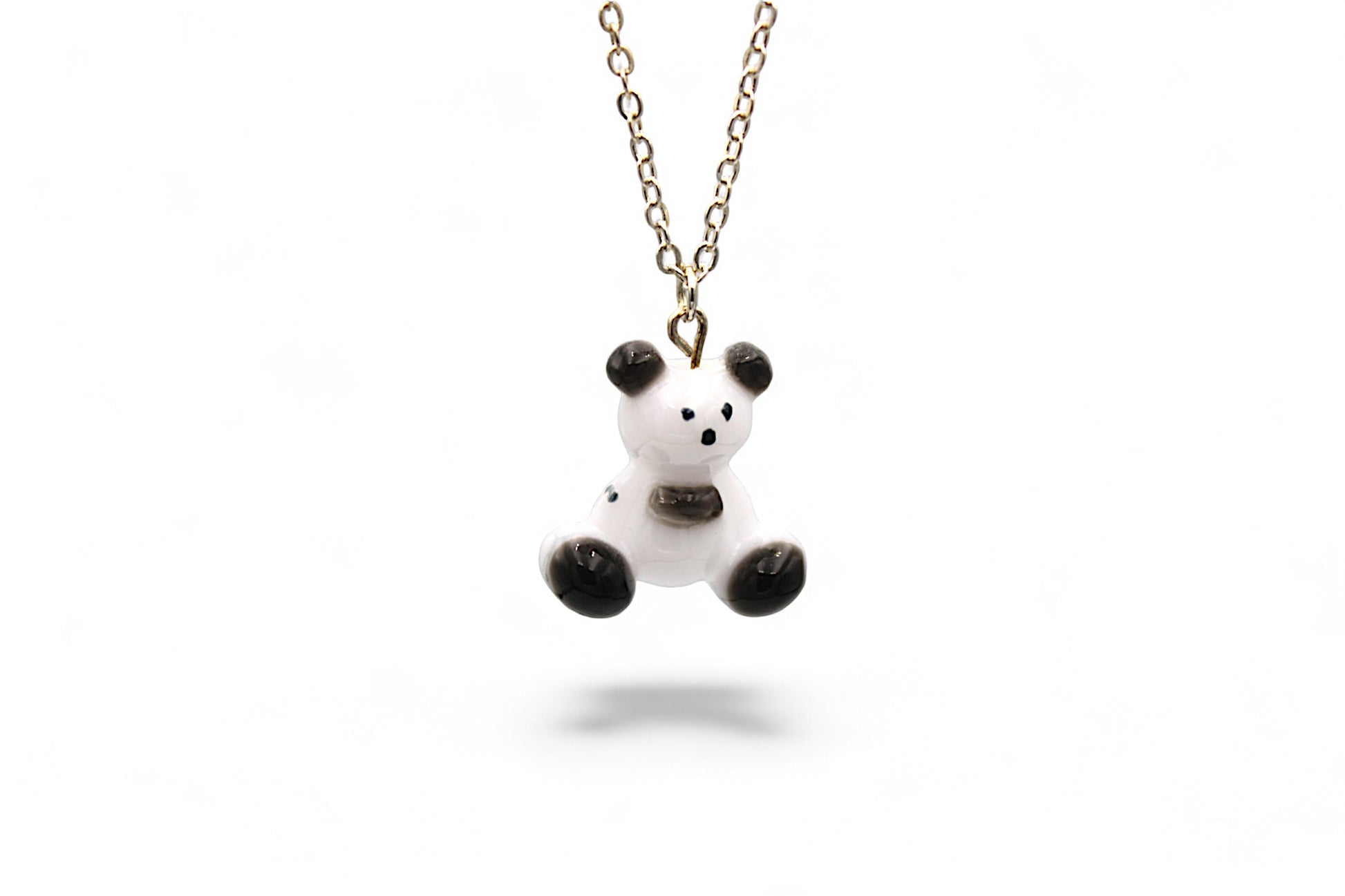 Ce collier original et tendance est composé d'une chaîne en acier inoxydable argenté d'environ 55 cm de long, ornée d'un adorable ourson en résine de 2 cm de couleur blanc et noir.