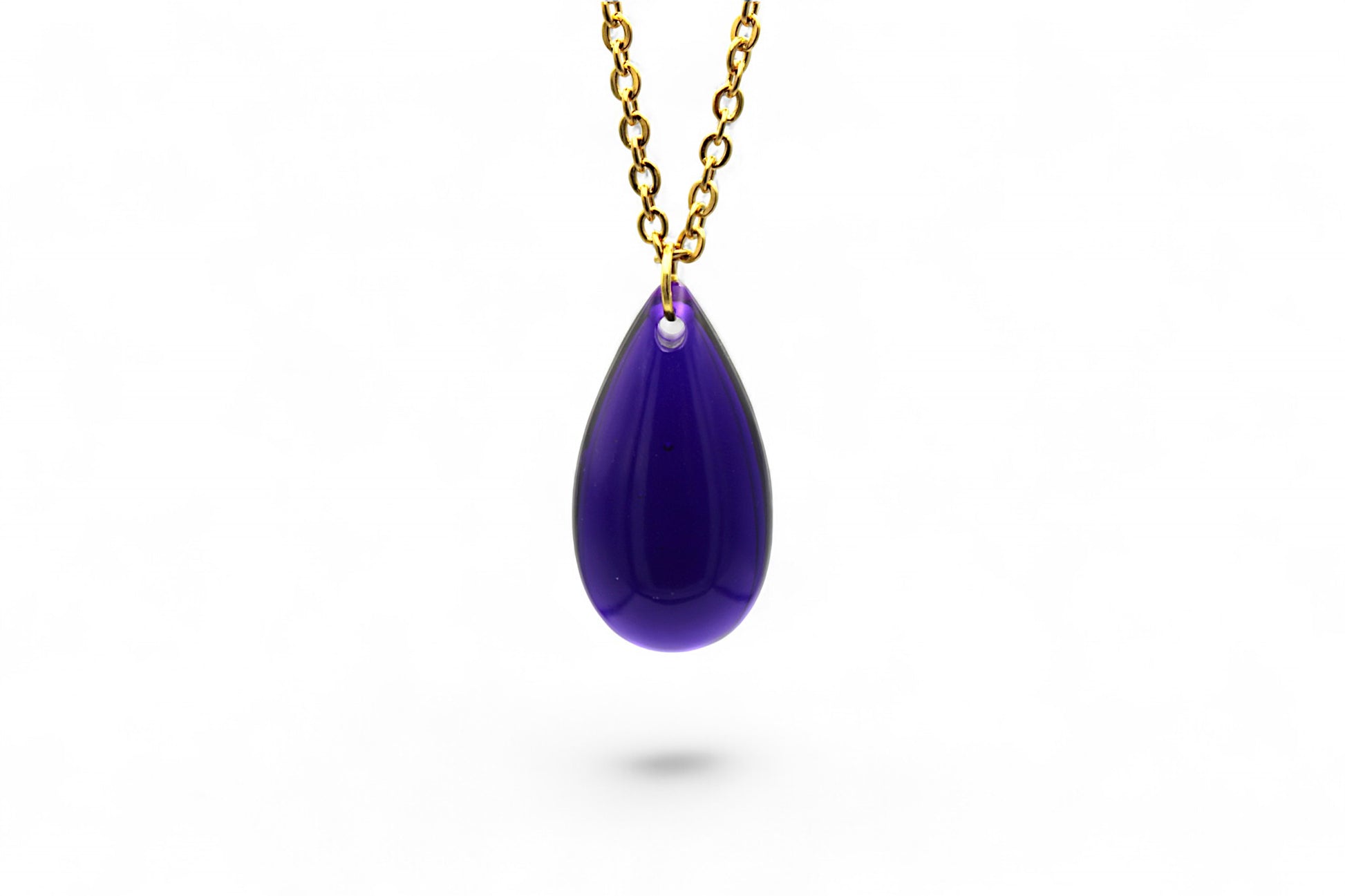Ce collier élégant et raffiné est composé d'une chaîne en acier inoxydable doré de 46 cm de longueur, orné d'une sublime goutte d'eau en résine bleue-violet de 3 cm de longueur. Ce bijou apportera une touche de couleur et de sophistication à toutes vos tenues.