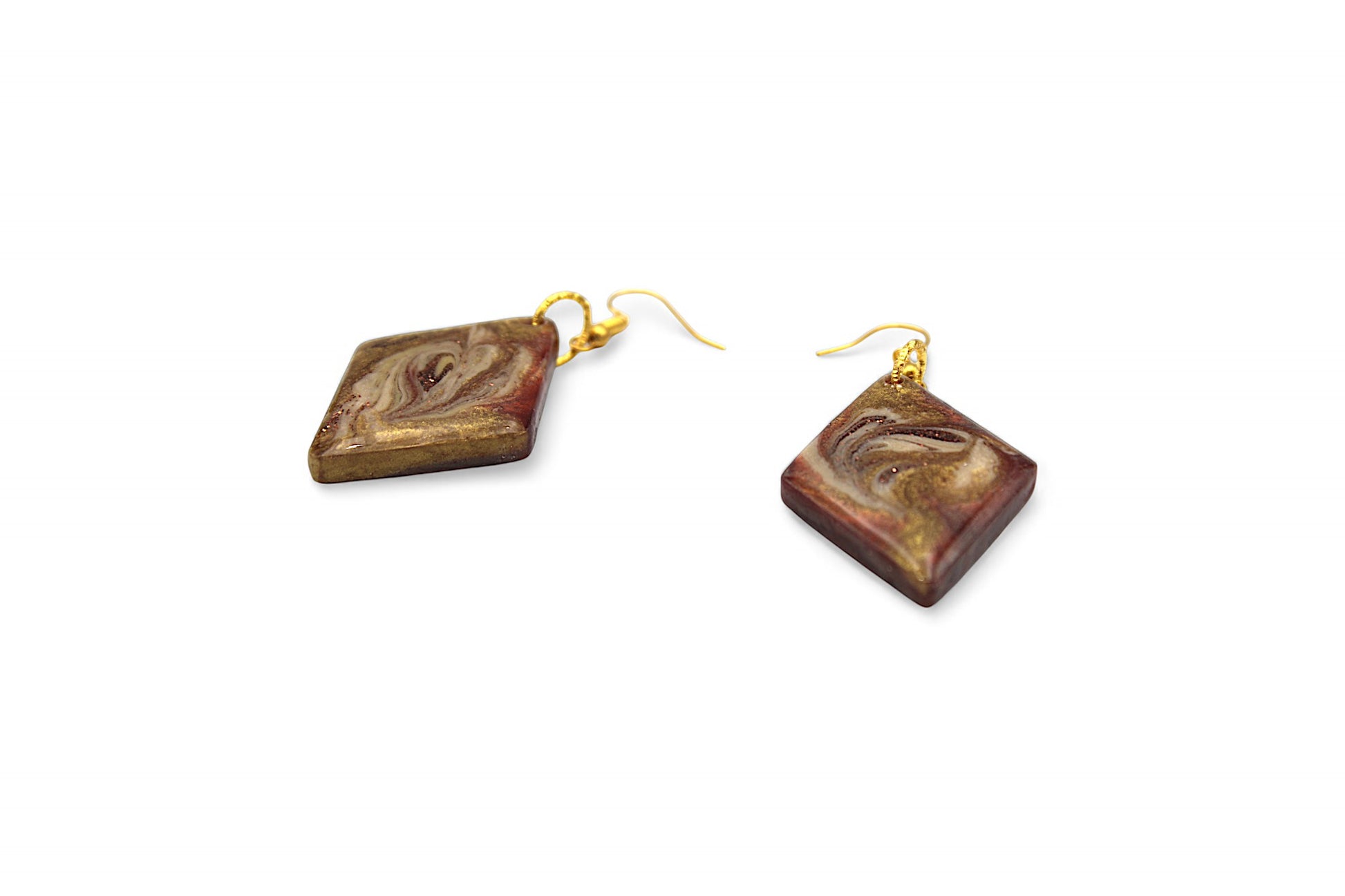 Boucles d'oreilles pendantes de 6 cm avec losange de 4 cm sur 3 cm en résine marron nacré