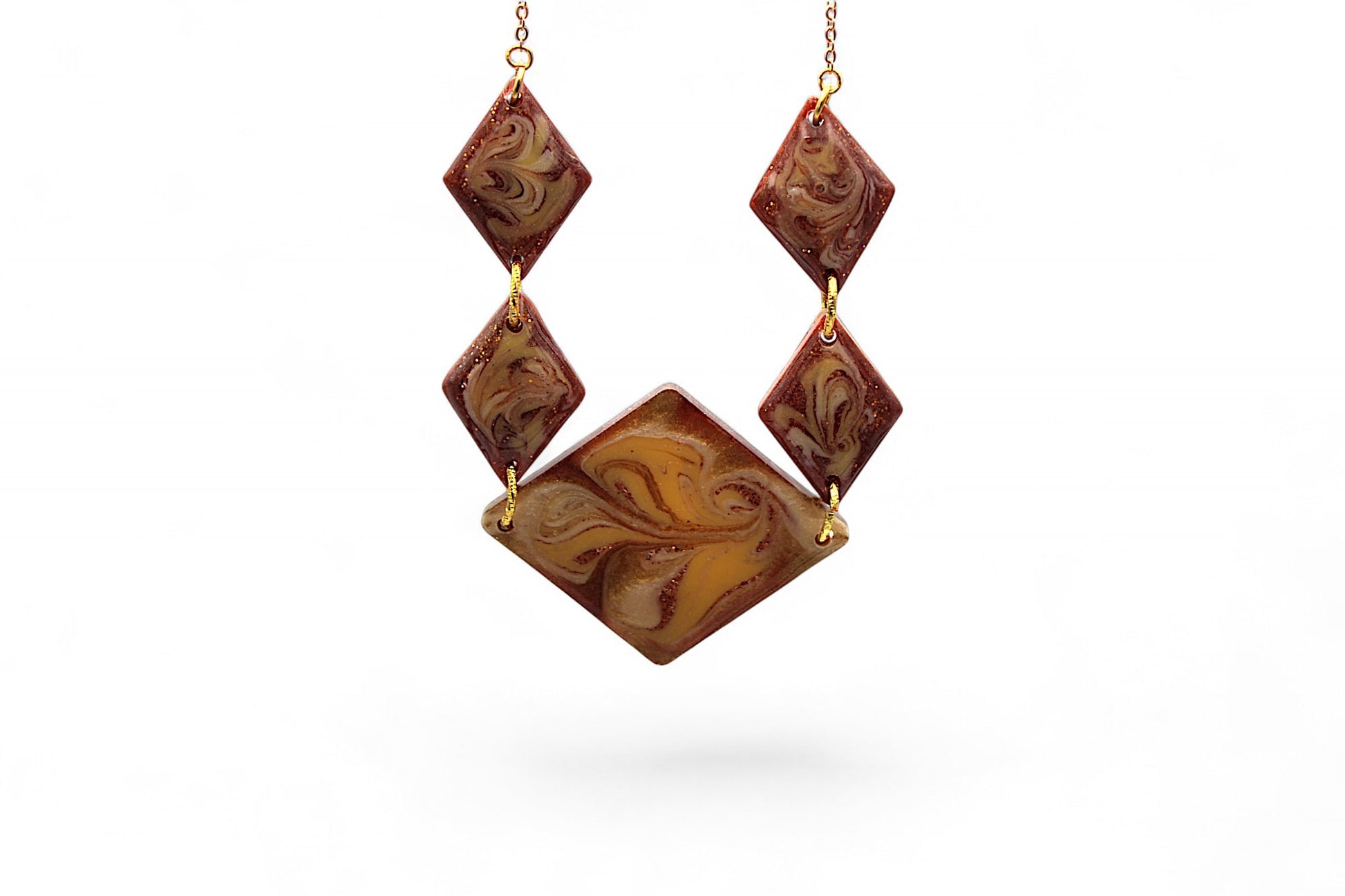 Collier de 58 cm avec losanges de 2,5 cm sur 2 cm et 5 cm sur 4 cm en résine marron nacré