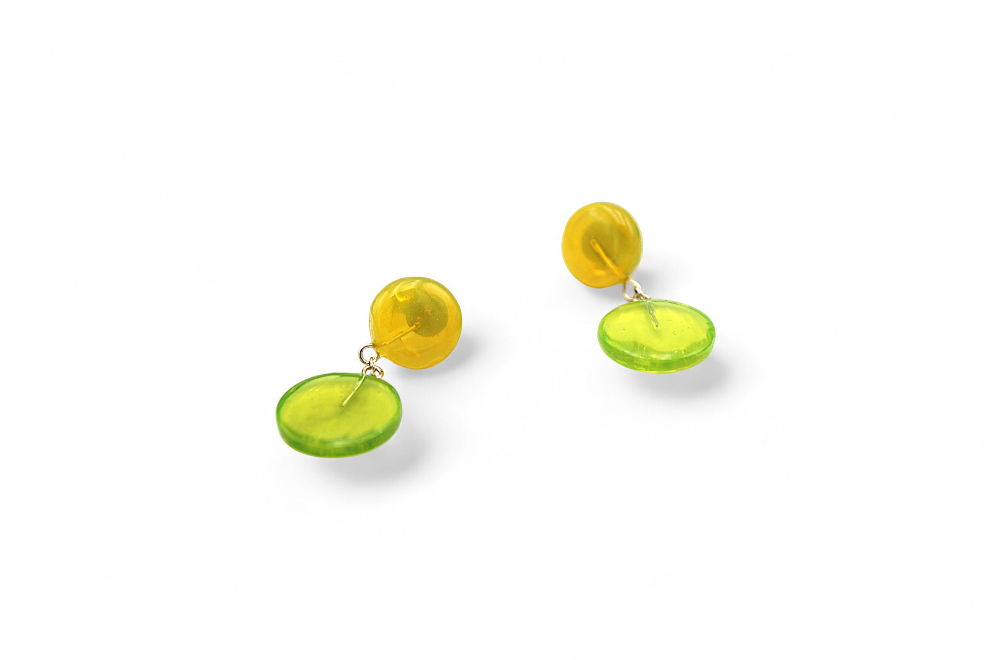 Clous d'oreilles pendants avec cercles en résine mangue et résine verte