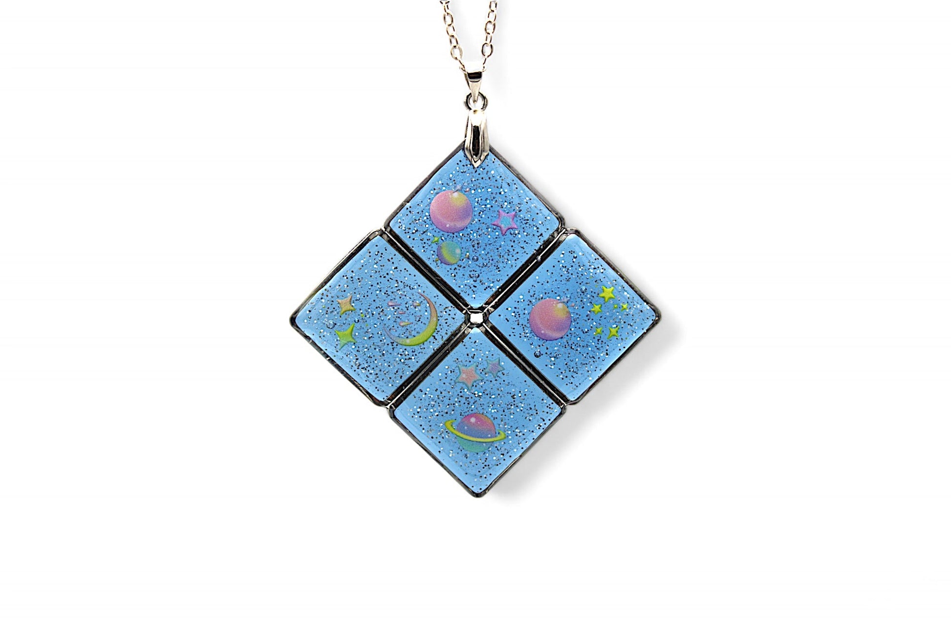 Motifs de carrés en résine bleue avec stickers planètes et étoiles