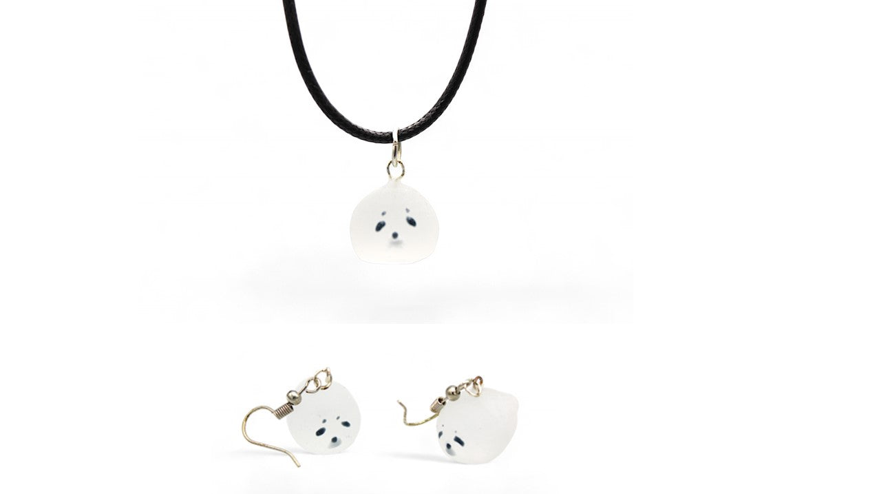 N'hésitez plus et offrez-vous ou offrez à vos proches cette superbe parure collier et boucles d'oreilles Phoque en résine blanc mat pour un look tendance et adorable !