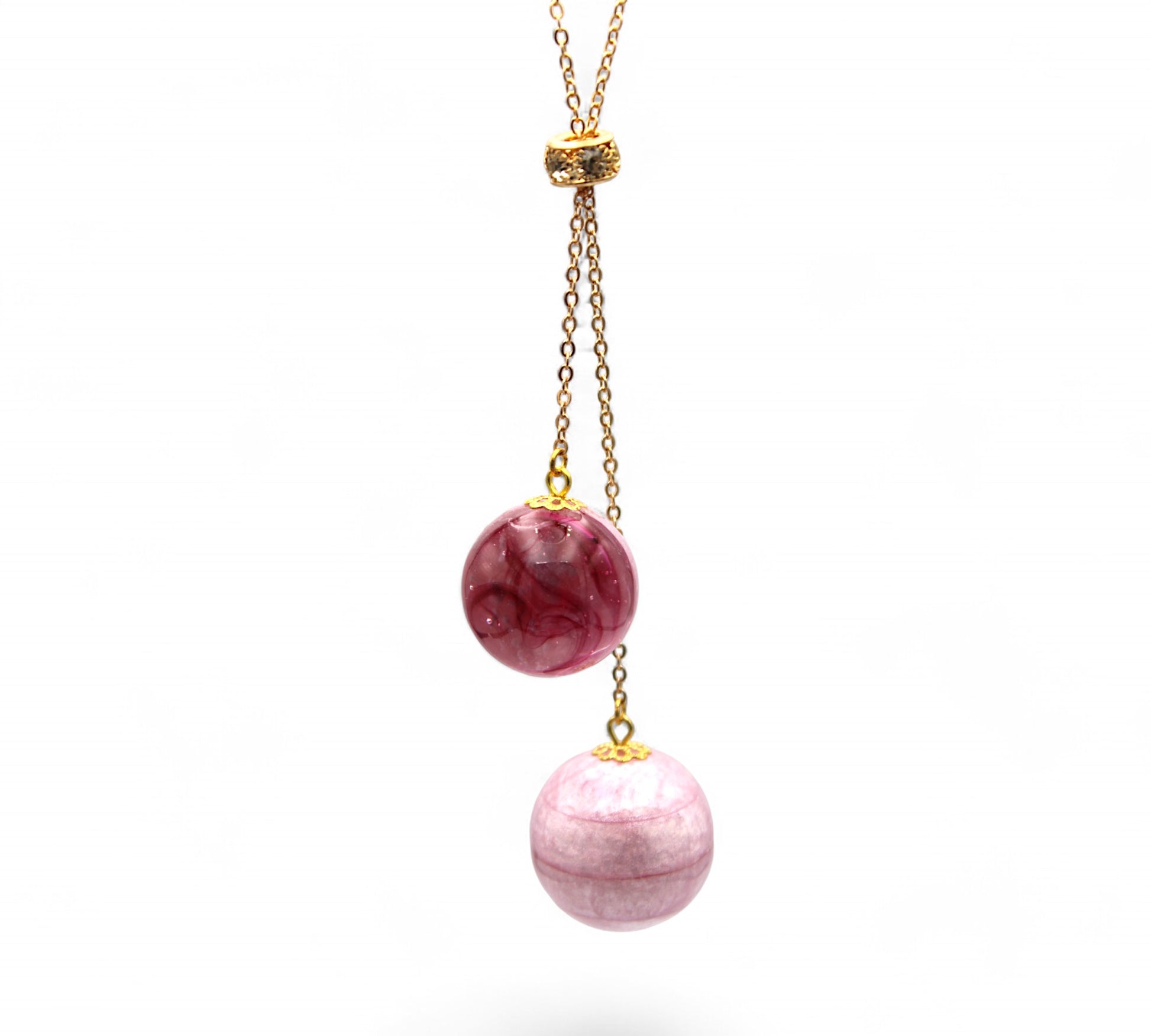 Découvrez notre collier Élégance Rose Nacrée, un accessoire raffiné et tendance qui saura rehausser toutes vos tenues. Ce collier en acier inoxydable doré de 53 cm se distingue par son pendentif unique de 9 cm, composé de deux sphères délicates en résine. La première sphère, en résine rose nacré, mesure 2,5 cm de diamètre, tandis que la seconde, en résine effet fumée rose, fait 2 cm de diamètre. Ces sphères sont reliées par un élégant cercle doré parsemé de strass scintillants, apportant une touche de glamour à votre décolleté.